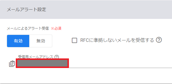これがZabbixからAMCへメール通報するための送信先メールアドレスになります。